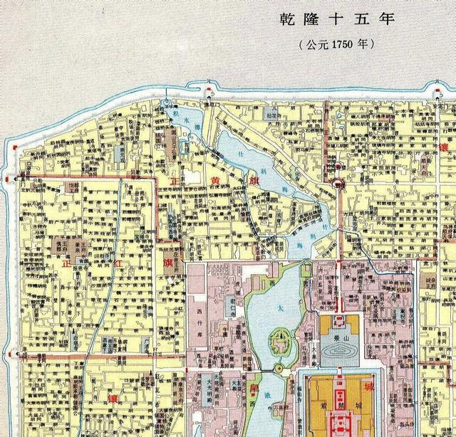 由此图我们确实能够看出北京城没有西北角,但是事实上没有西北角的原因众说纷纭。