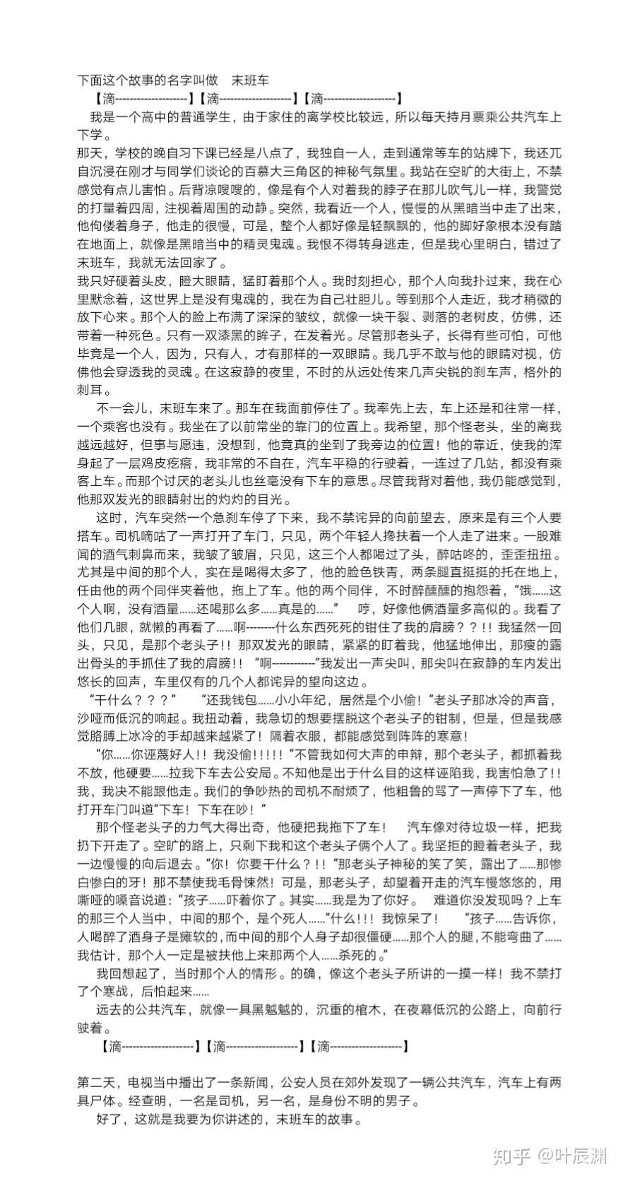 这个关于北京375路公交车的都市传说堪称经典。故事大致讲述深夜公交车上发生的一起离奇事件:一位老人察觉刚上车的“乘客”没有双腿,其实是一个鬼,急忙拉着身旁的年轻人提前下车,两人因此逃过一劫。如下图。然而,细究起来,这个传说实则漏洞百出。目前网络上流传的各个版本不仅存在大量矛盾,叙述也往往含糊不清。更重要的是,现实中从未发生过与之相似的事件,因此基本可以断定属于杜撰。值得注意的是,据考证,该故事早在1995年之前便已出现。能够流传至今,说明它在当年颇具影响力,但关于这趟“幽灵公交车”的传说,大抵也到此为止了。